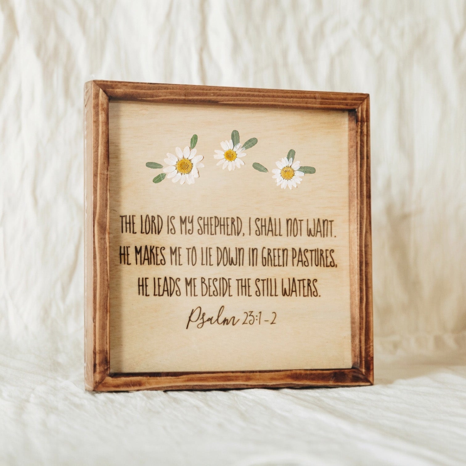Delicate yet enduring, the Pressed Flower Collection pairs real pressed flowers with elegant Scripture lettering, offering a tender expression of faith and timeless beauty