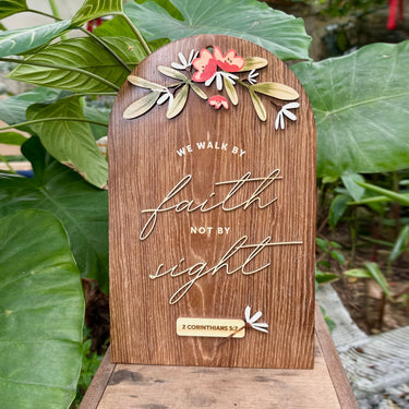 Inspired by the timeless stone tablets of the Ten Commandments, the Essential Arc Series embodies grace and reverence in its arched silhouette. Each piece is meticulously crafted from solid wood and delicately hand-painted with botanical motifs, transforming Scripture into a work of art that speaks both in beauty and in meaning.
