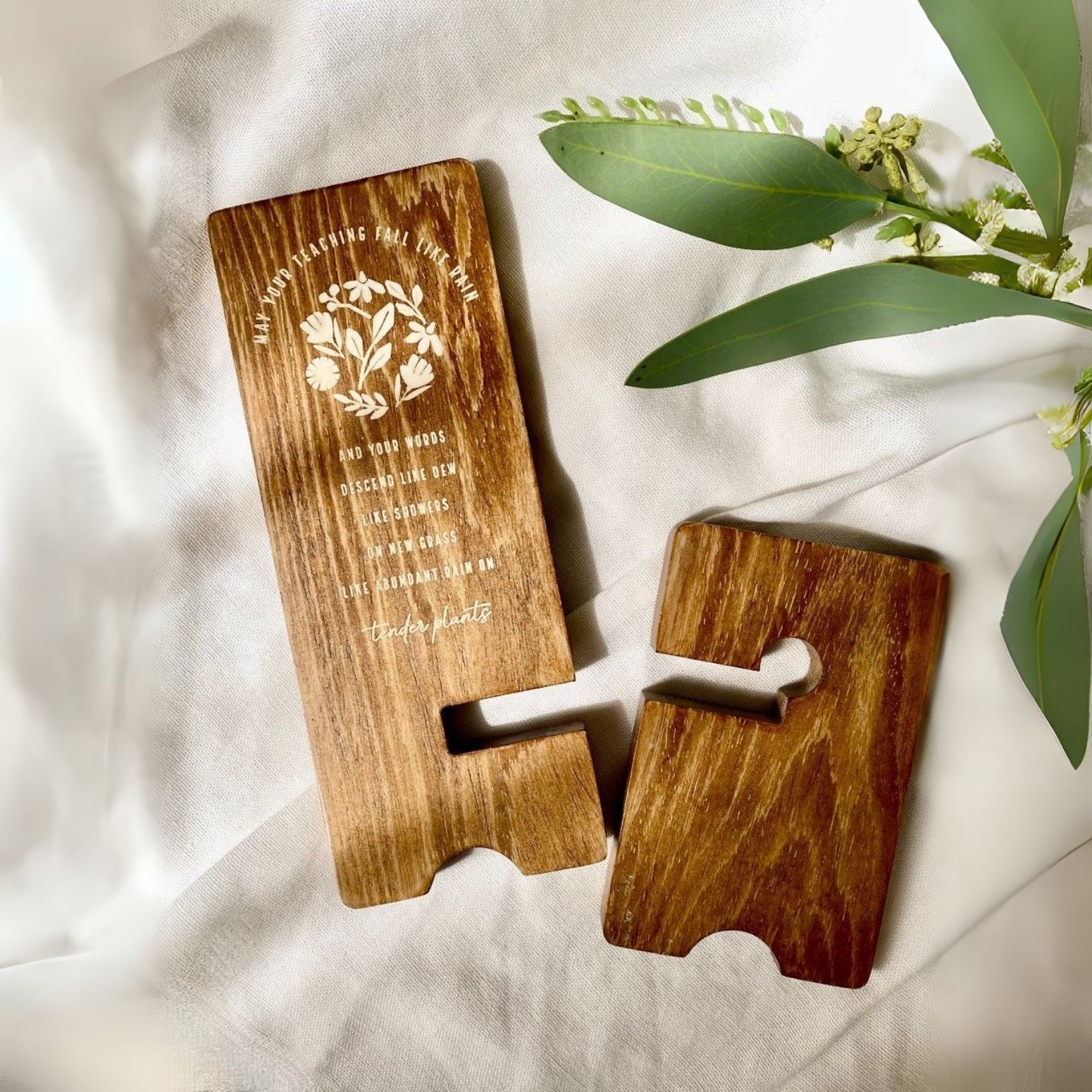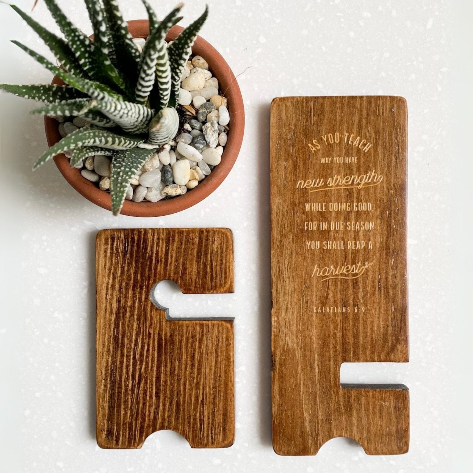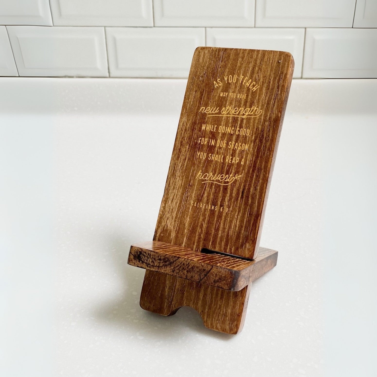 Add a touch of elegance to your desk with this handcrafted phone stand, perfectly angled for effortless viewing and gently reminding you of God’s Word each day.