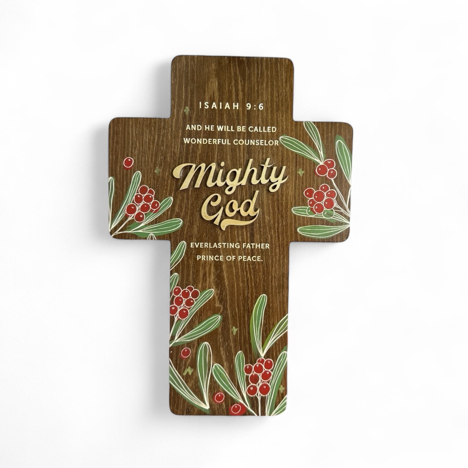- Hand-painted winterberry artwork in warm holiday tones