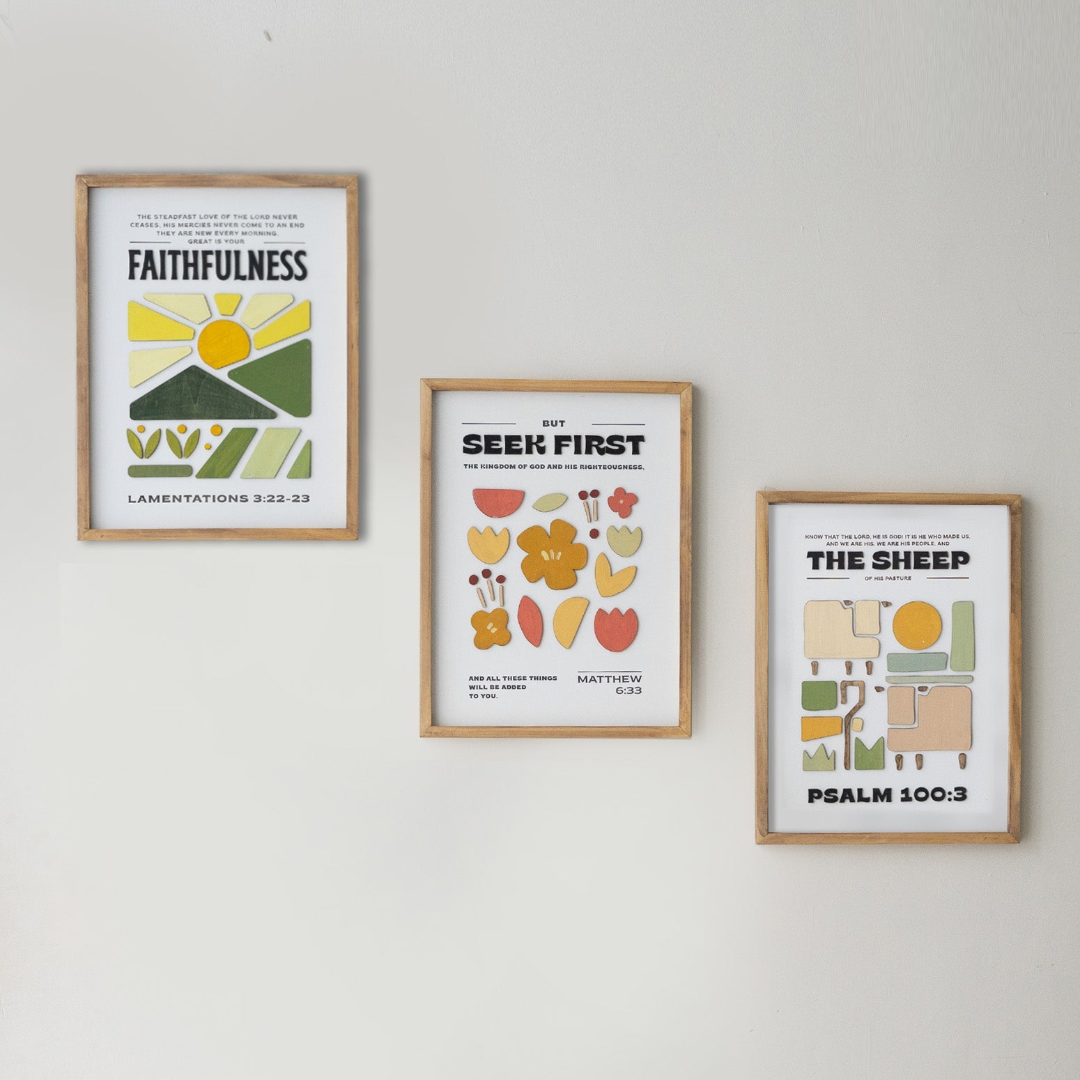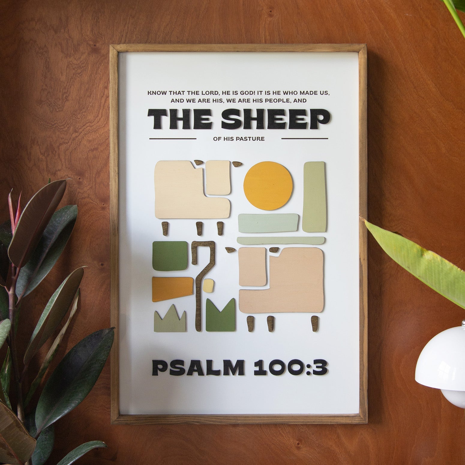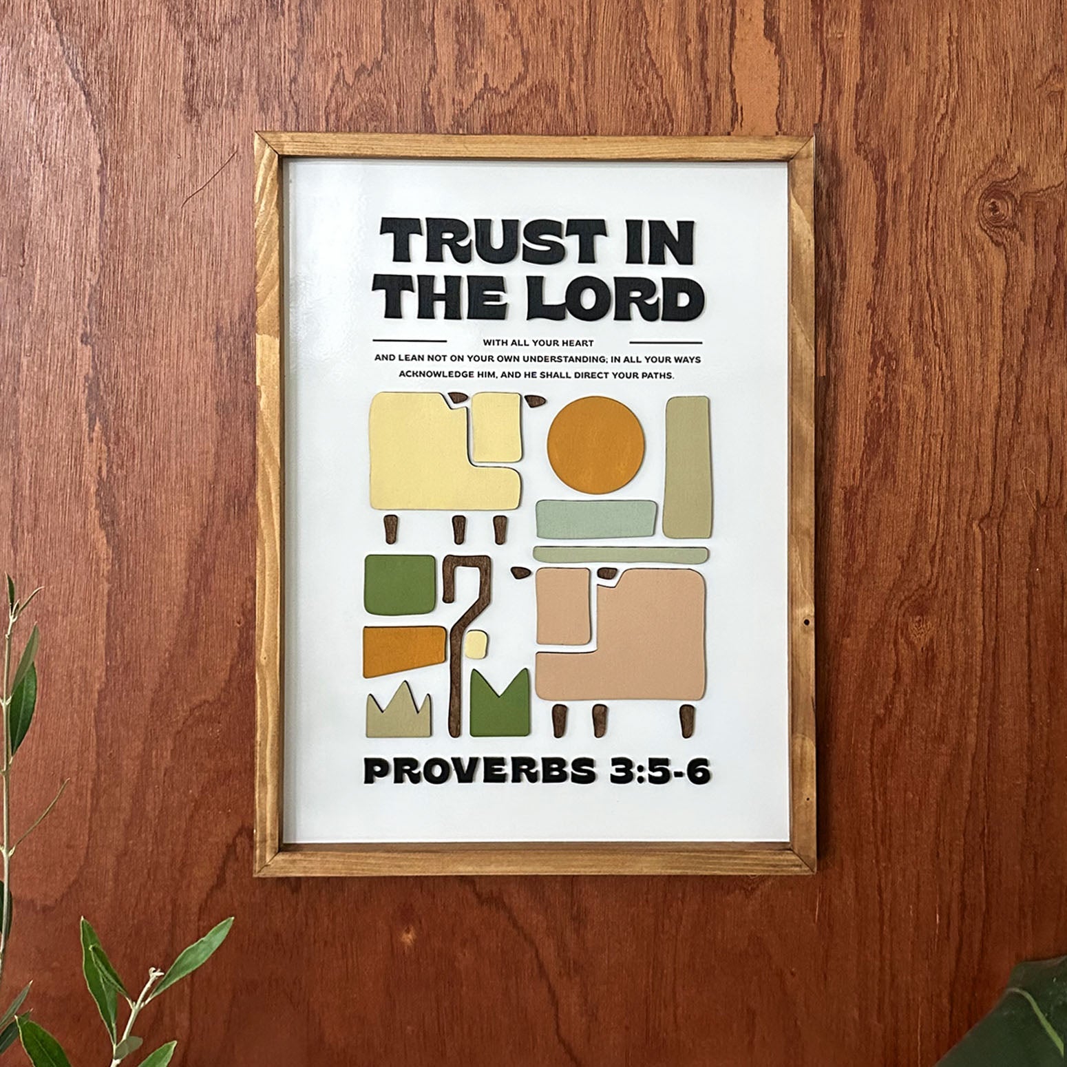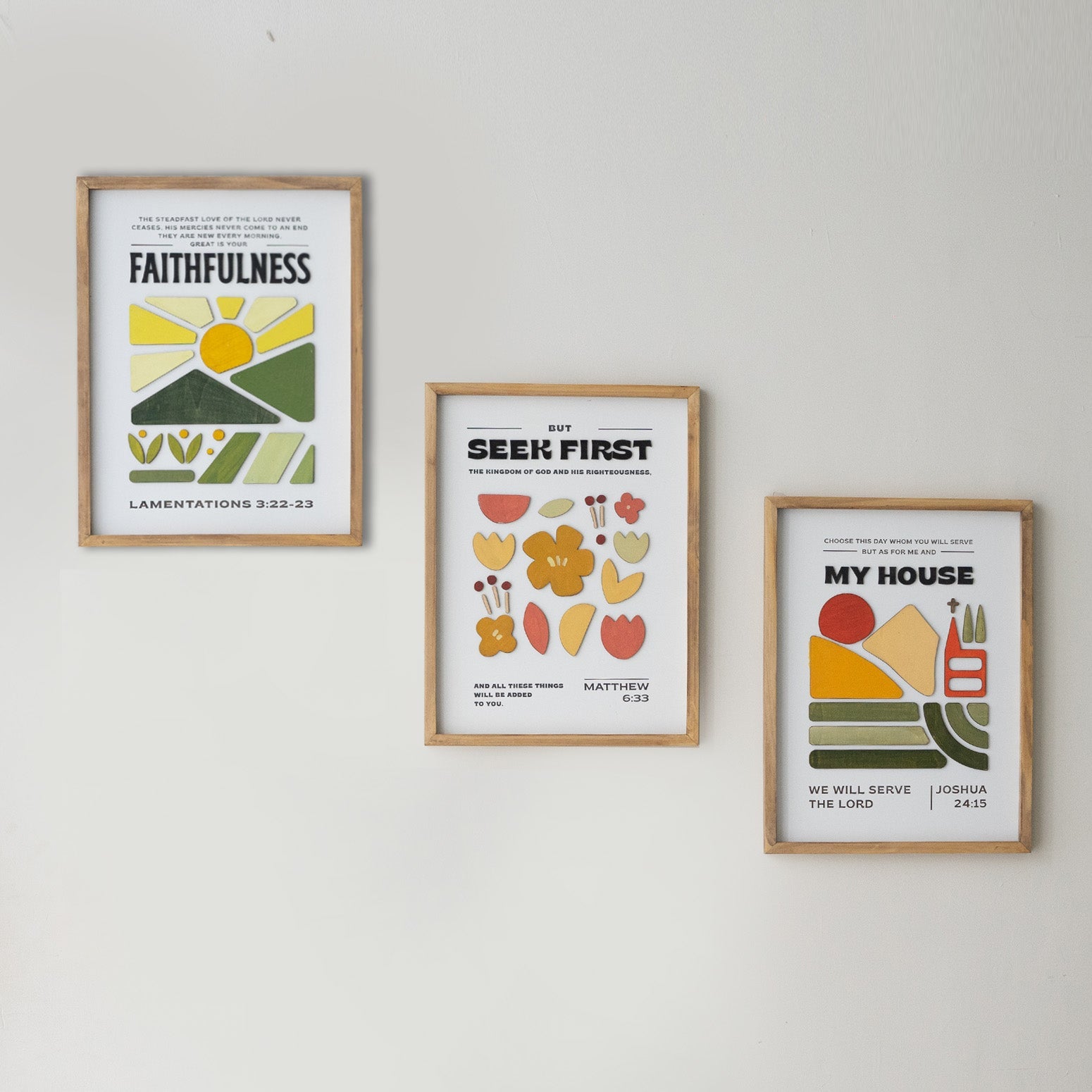 Rendered in a thoughtfully curated color palette and accented with distinctive hand-cut shapes, this piece brings Scripture to life with striking visual impact.